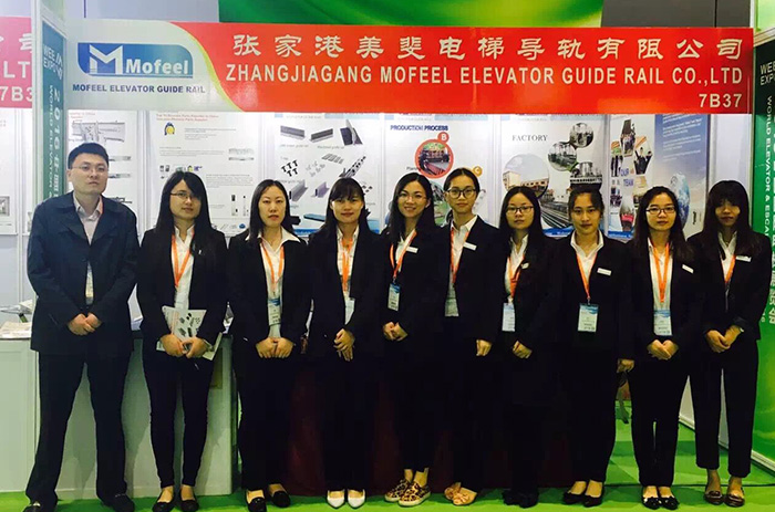 It is reported that there are more than one thousand well-known overall the manufacturers and elevator components enterprises participated in the Elevator Exhibition ,It was a vast celebration of the elevator industry.Based on the spirit of learning and communication.Our company (zhangjiagang Mofeel elevator guide rail co., LTD.) also took part in the exhibition.Our company is aiming at innovation products, committing to providing customers with first-class products and first-class service.We continue to improve technology and constantly expand the market, and try our best to bring good elevator product to customers.